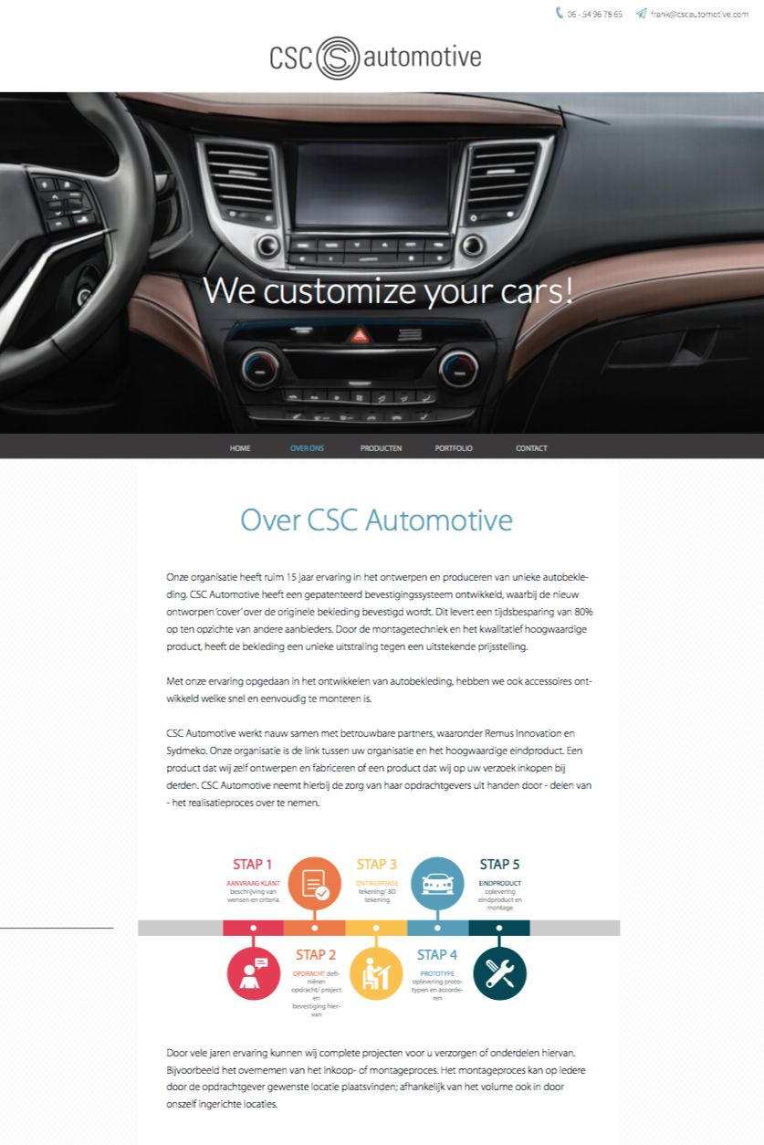 CSC heeft ruim 15 jaar ervaring in het ontwerpen en produceren van unieke autobekleding. CSC Automotive heeft een gepatenteerd bevestigingssysteem ontwikkeld, waarbij de nieuw ontworpen ‘cover’ over de originele bekleding bevestigd wordt. Dit levert een tijdsbesparing van 80% op ten opzichte van andere aanbieders. Door de montagetechniek en het kwalitatief hoogwaardige product, heeft de bekleding een unieke uitstraling tegen een uitstekende prijsstelling.