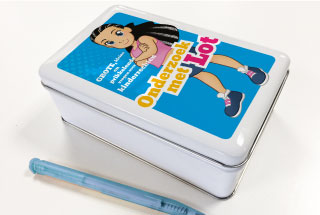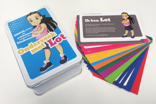 Herman van Veen is geestelijk vader van het boegbeeld van de stichting: het meisje Lot Roos. Via de website van Lot kan het spel ‘Onderzoek met Lot’ worden besteld. Het spel bestaat uit onderzoekskaarten voor het onderwijs in een stevig en mooi bedrukt blik. Dit hebben we tegen gereduceerde tarieven ontwikkeld. Drukkerij Bestenzet in Zoetermeer heeft bijgedragen met een flinke korting op het drukwerk.
